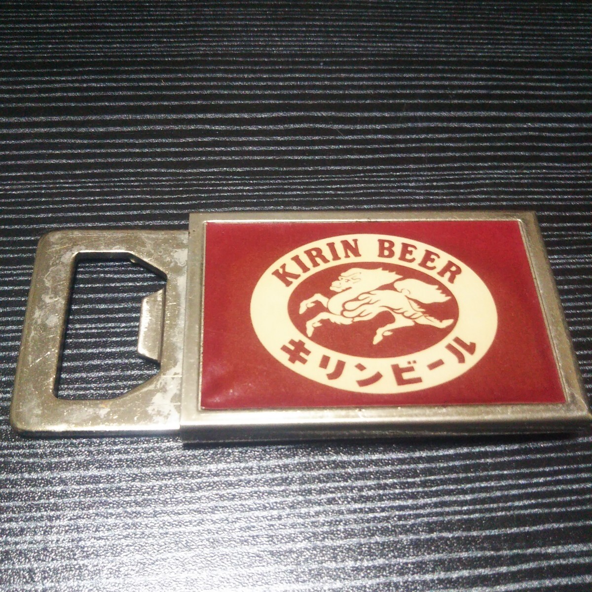 - レトロ人気商品キリンビールブルタブ型スライド式栓抜きです。マグネット付き