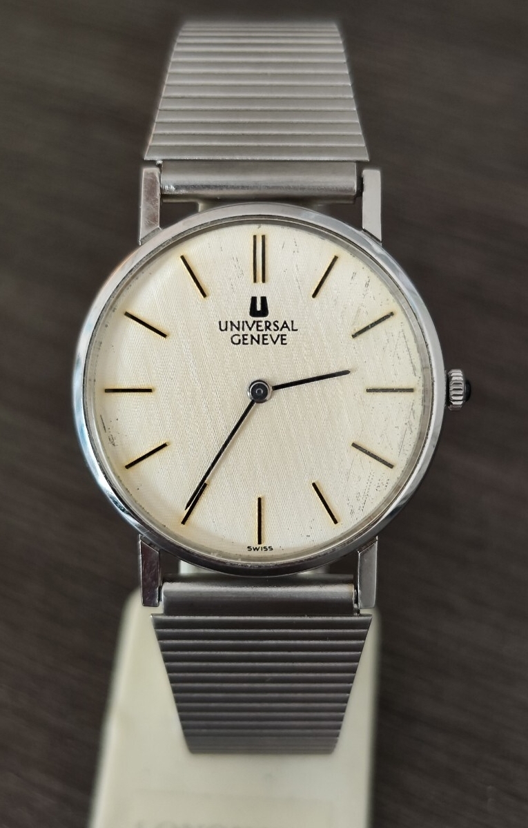 - 手巻き 稼働品 UNIVERSAL GENEVE メンズ腕時計 アイボリー文字盤 ユニバーサルジュネーブ