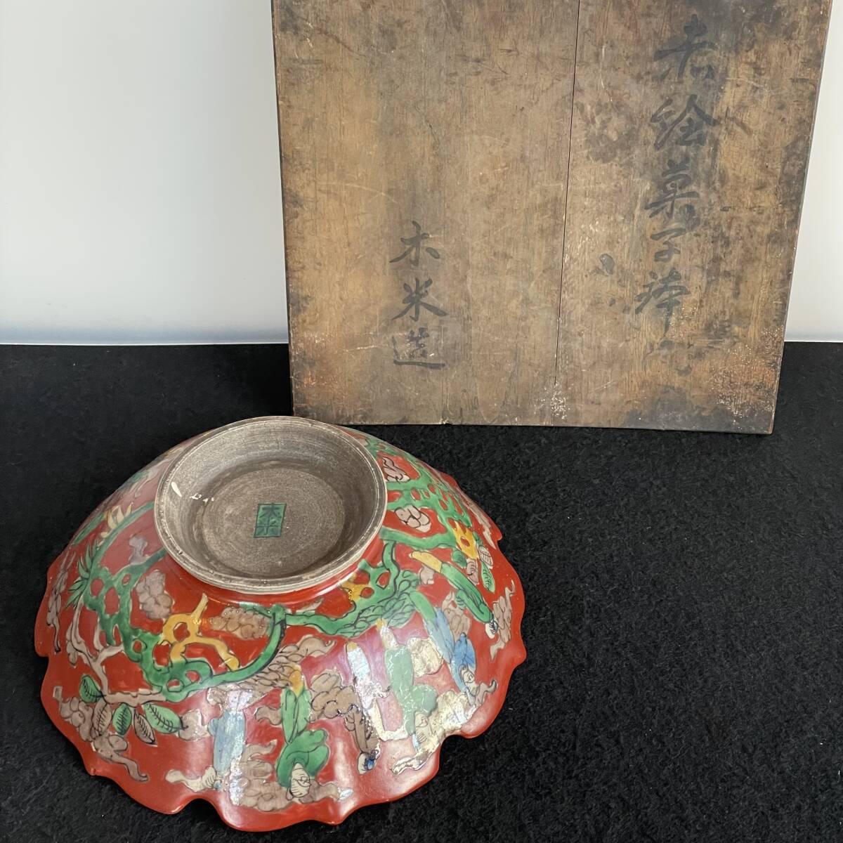 - 青木木米 赤絵菓子鉢 京焼 共箱 鉢 百寿老人紋 金彩 旧家蔵出 江戸期 美品