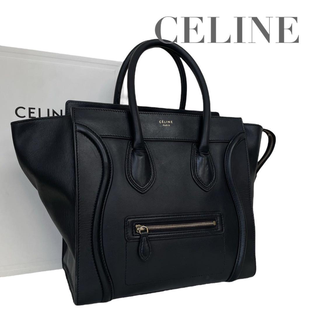 - 希少 セリーヌ ラゲージ ミニショッパー ハンドバッグ トート 黒 5005