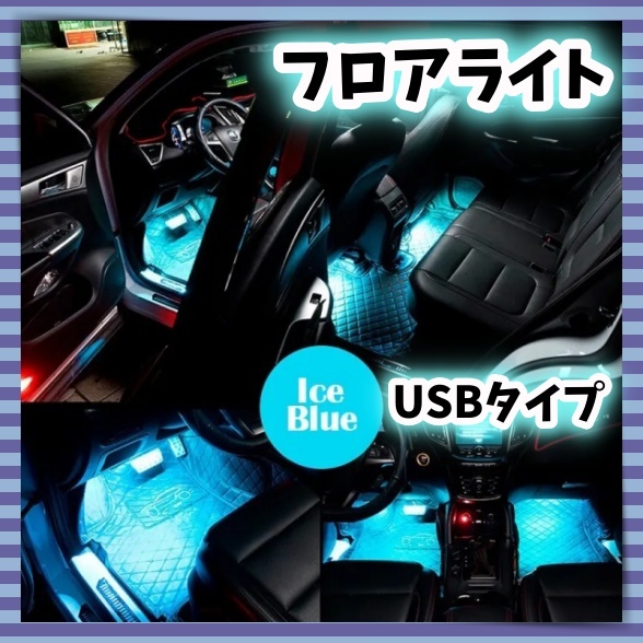 - USB電源 12V 24V LED フロアライト 2本 アイスブルー 車内 足元 照明 装飾 フットランプ LEDテープ イルミネーション 汎用 家でも使える