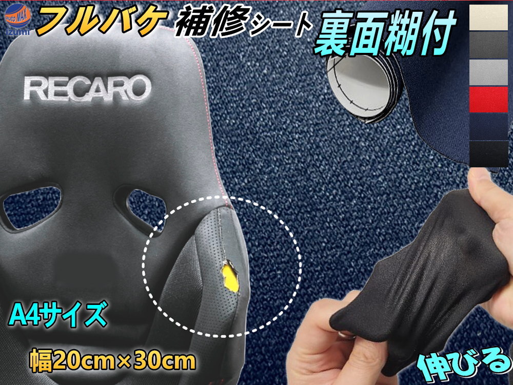 > フルバケ補修用シート (A4) 紺 20cm×30cm 裏面糊付き バケットシート フルバケットシート セミバケット セミバケ 0
