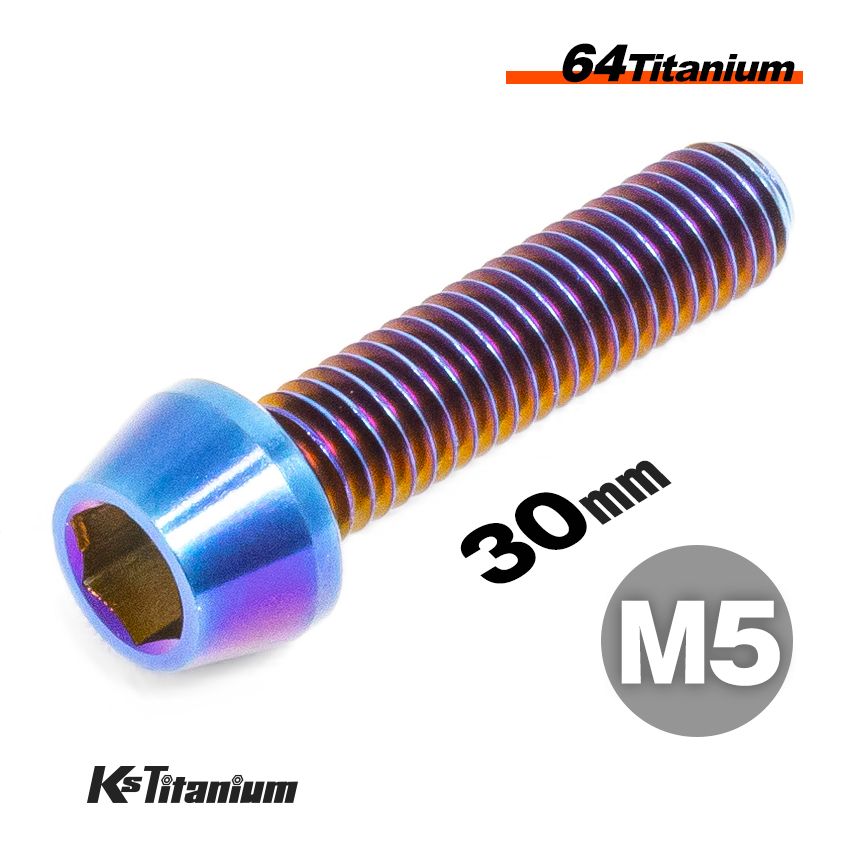 > チタンボルト M5×30 P0.8 焼き色 1本売り 64チタン テーパーボルト スレッド FULL(全ネジ) バイク レストア パーツ