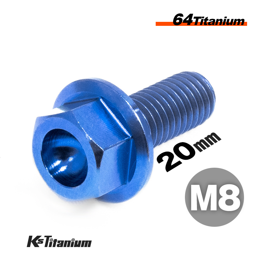 - チタンボルト M8×20 P1.25 ブルー 64チタン フランジボルト 全ネジ Ti-6Al-4V Gr5 チタン合金 バイク 自転車 ボルト 軽量