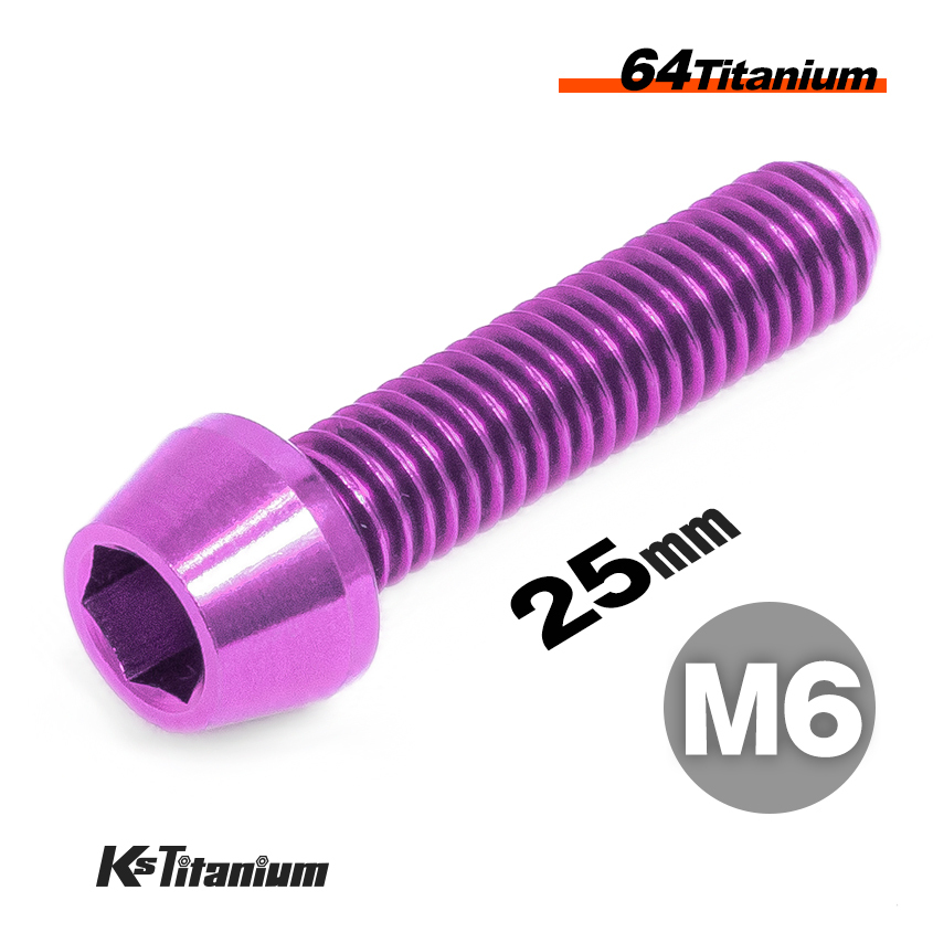 - チタンボルト M6×25 P1.0 パープル 64チタン テーパーボルト FULLスレッド 全ネジ チタン合金 バイク パーツ 自転車 軽量