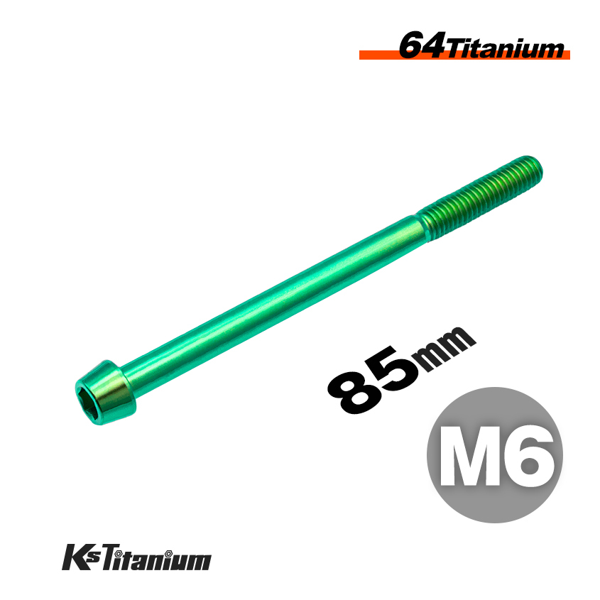 - チタンボルト M6×85 スレッド25mm P1.0 テーパーボルト グリーン 1本 64チタン M6 バイク レストア パーツ