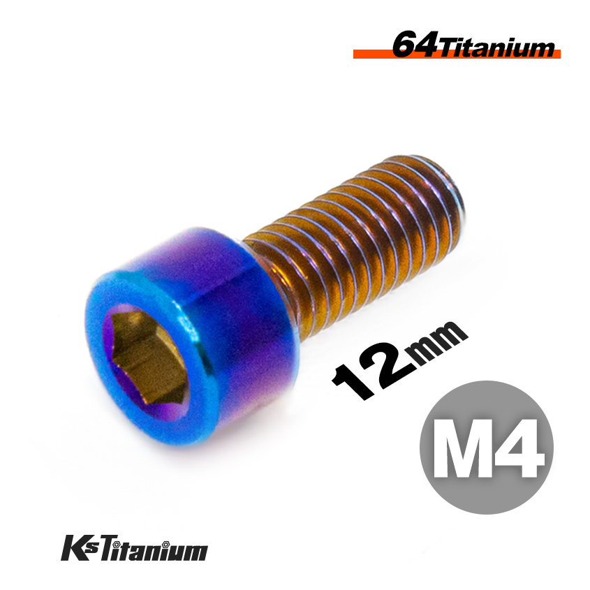 > チタンボルト M4×12 P0.7 焼き色 1本売り 64チタン キャップボルト スレッド FULL(全ネジ) バイク レストア パーツ