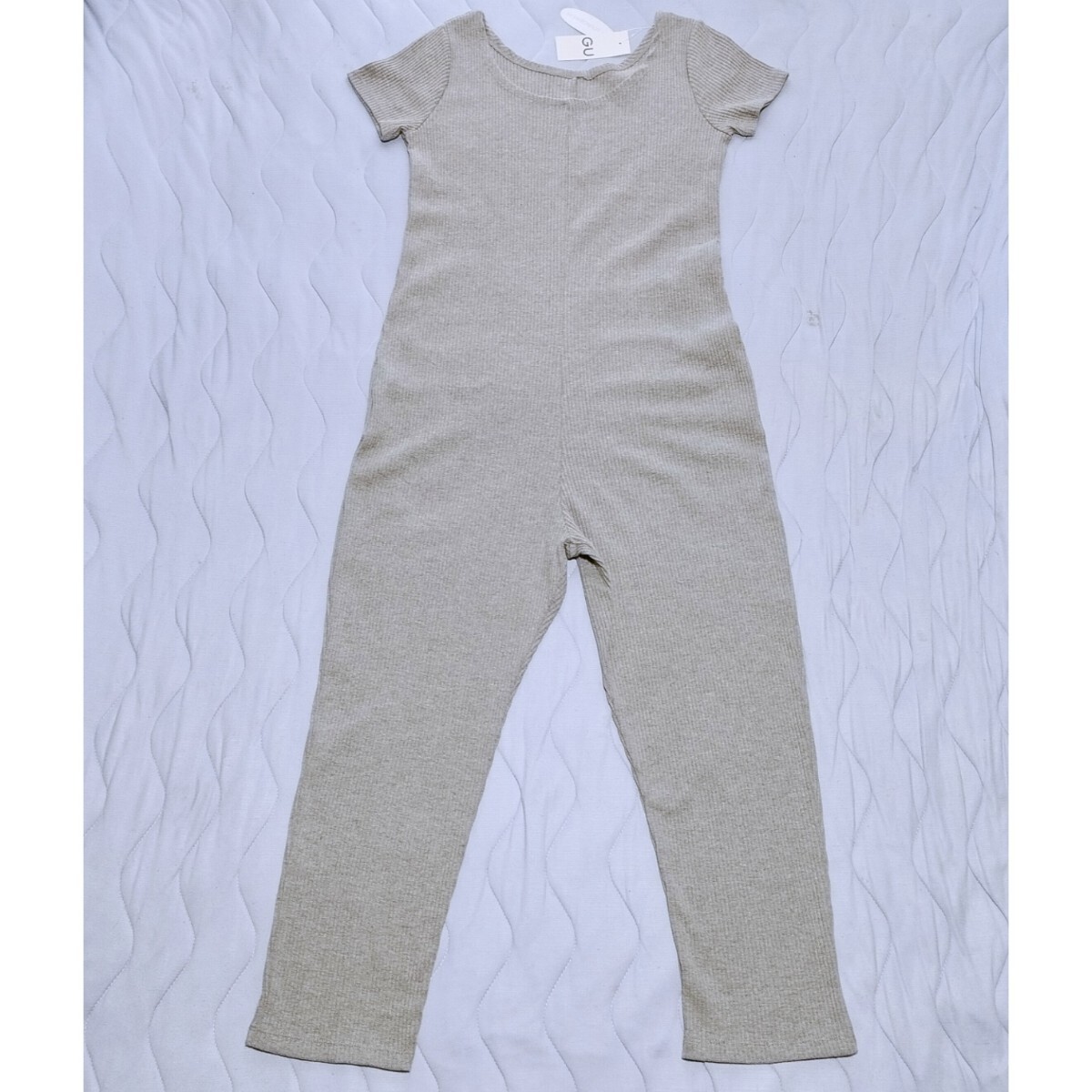 - 新品 gu オールインワン+E 部屋着 寝巻き パジャマ M つなぎ 腹巻 ワッフル生地
