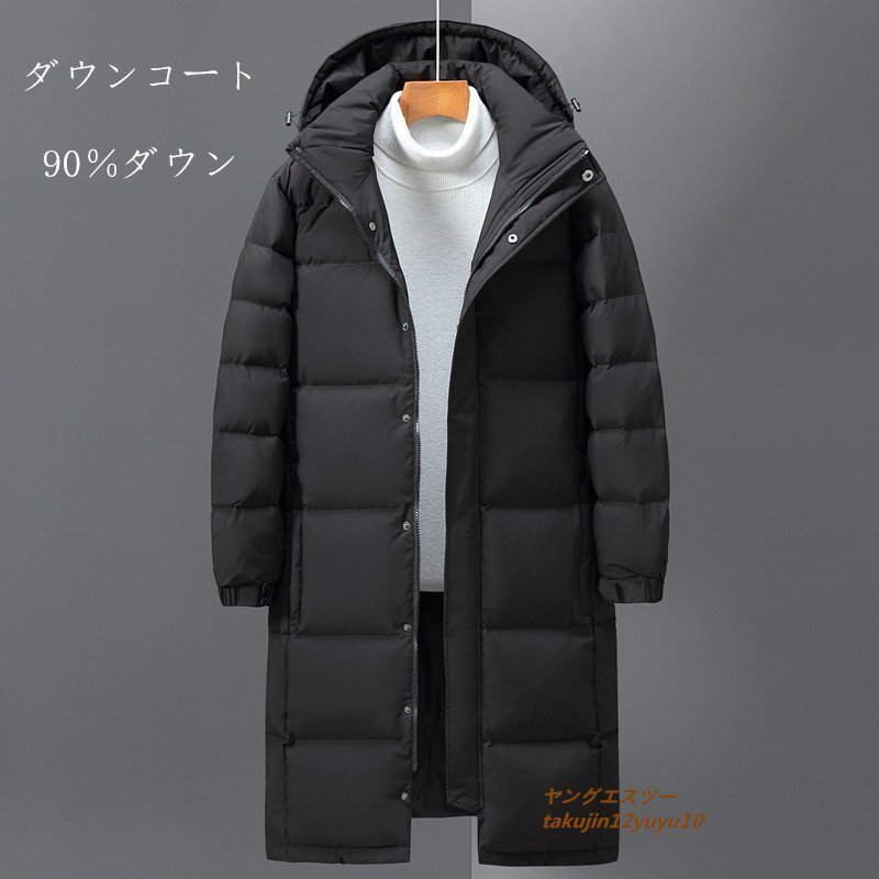 - 人気新品 メンズ ダウンコート フード付き ダウンジャケット ロングコート ライトダウン 秋冬 防風防寒 700フィルパワー 男女兼用 黒 S