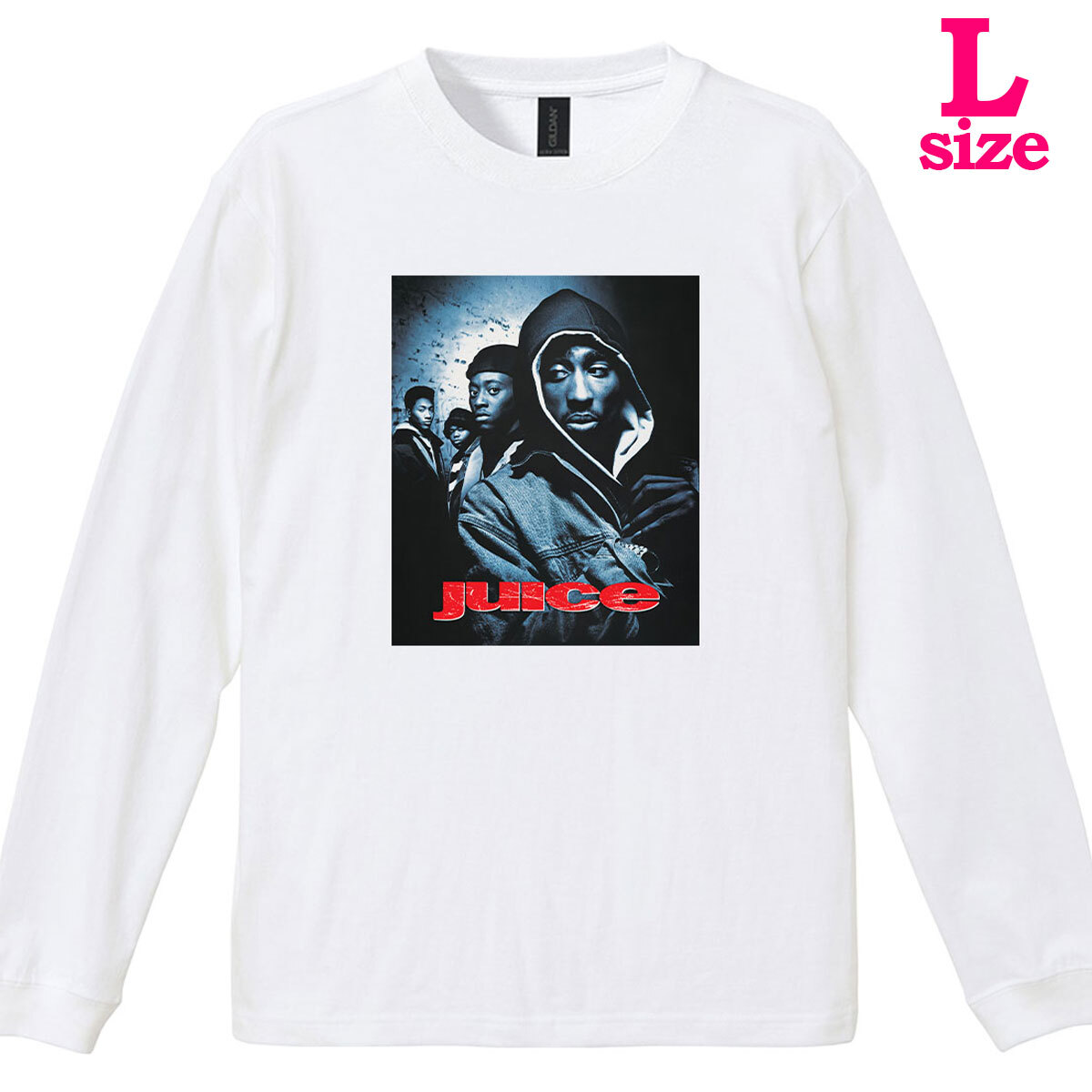 - ジュース JUICE 柄 フォトプリント リブ付き 長袖 Tシャツ 2パック 映画Tシャツ ロンT 6.0oz コットン100% ユニセックス L