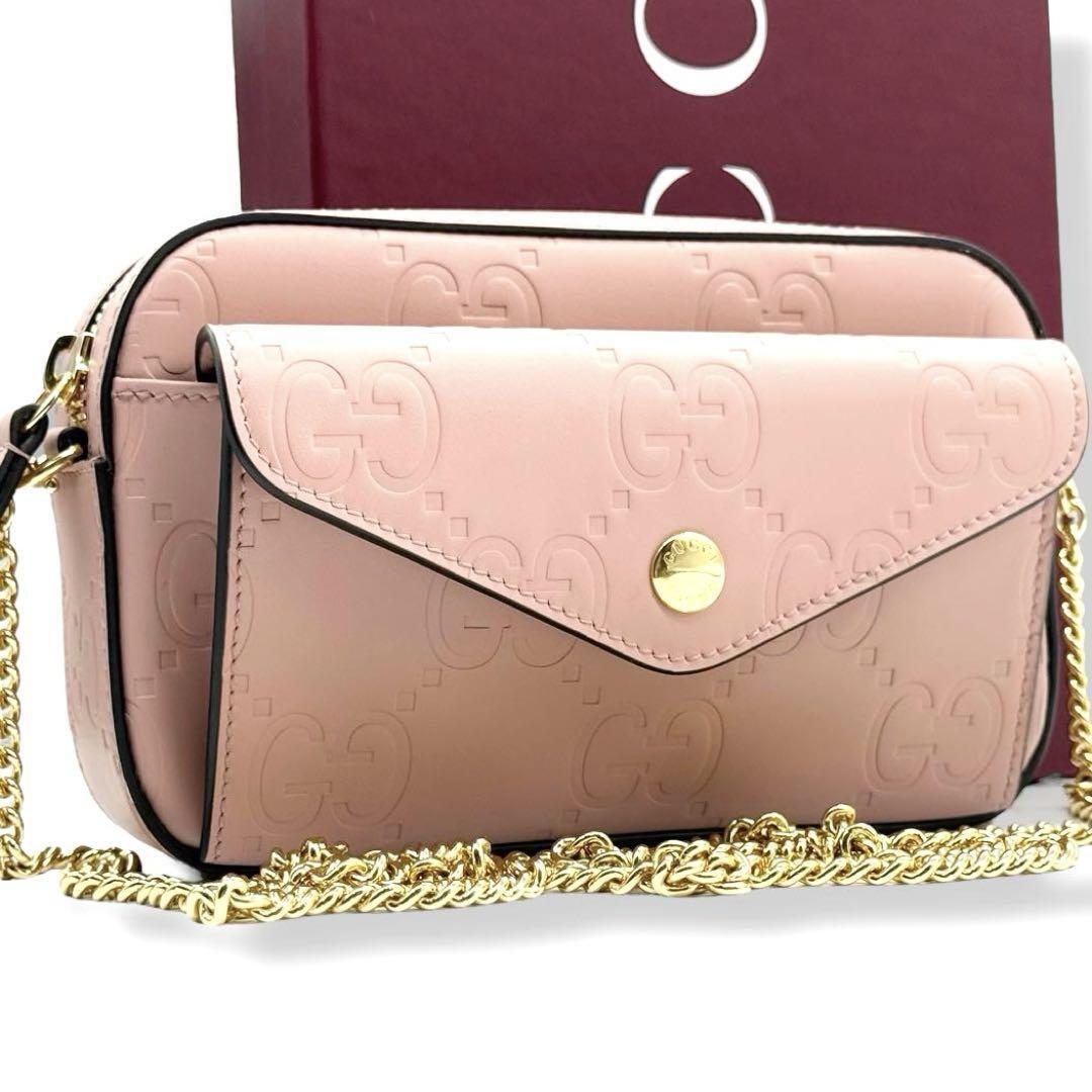 - 未使用 グッチ チェーンショルダーバッグ GGスーパーミニ GUCCI 781554 ピンク クロスボディ ポシェット 斜め掛け 箱付き 3975