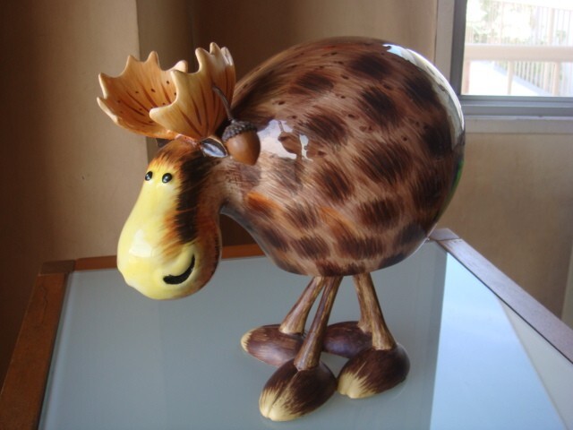 - ◆ ヘラジカ 陶器の置物 大型サイズ 高さ24cm ボブルヘッド 店舗什器 ディスプレイ ショップインテリアにも 世田谷発送 引取り可