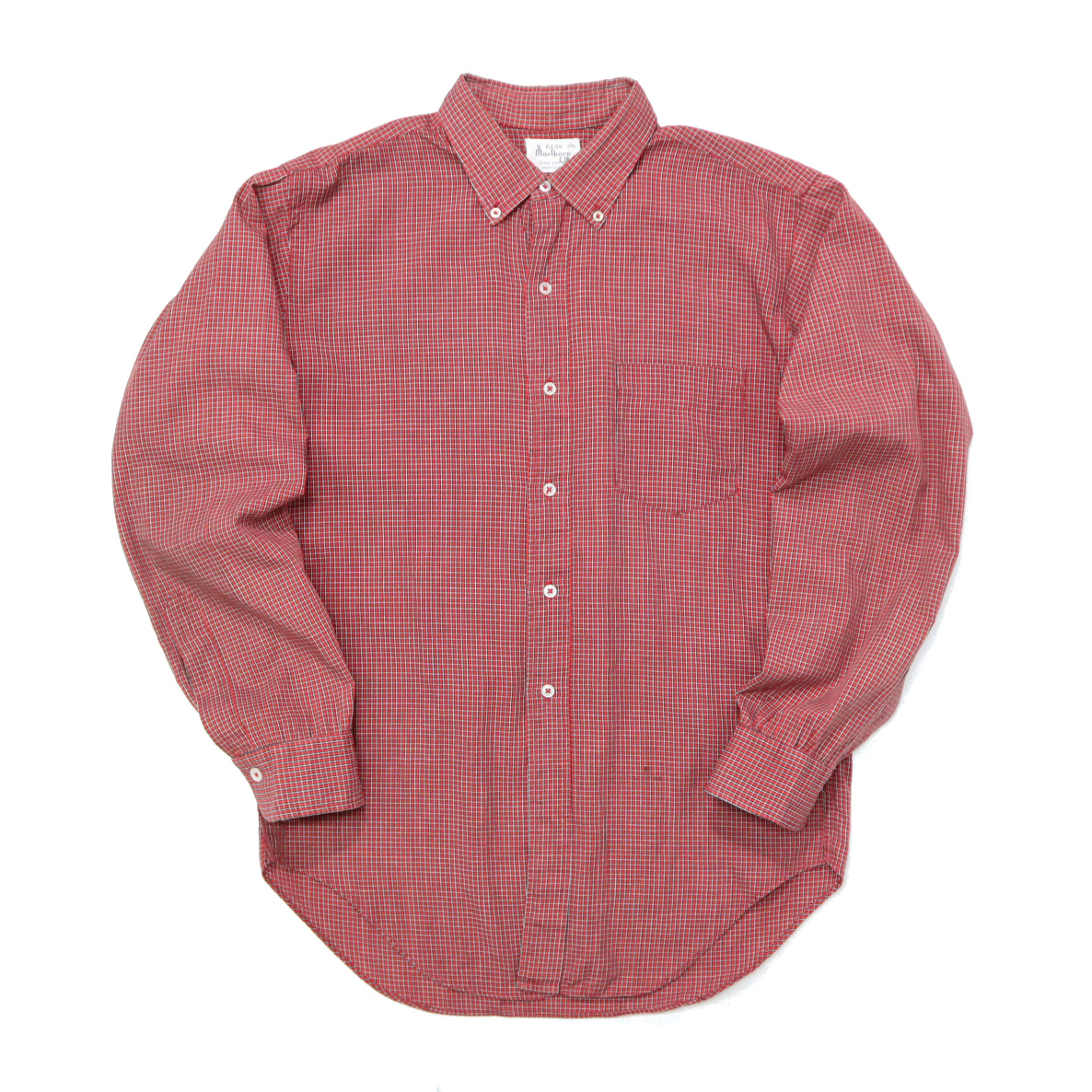 - 60s ビンテージ MARLBORO マルボロ チェック 長袖 ボタンダウン シャツ BDシャツ コットン 古着 1960年代 アメカジ トラッド アイビー 赤 L