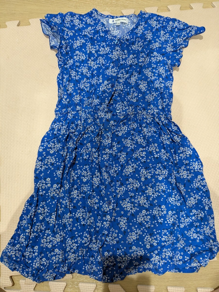 - ワンピース 半袖 女の子 ブルー 小花柄 グローバルワーク 110