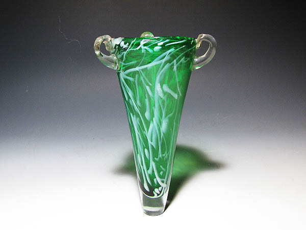 - 【桃】明治ガラス:乳白掻き揚げ吊り花活け