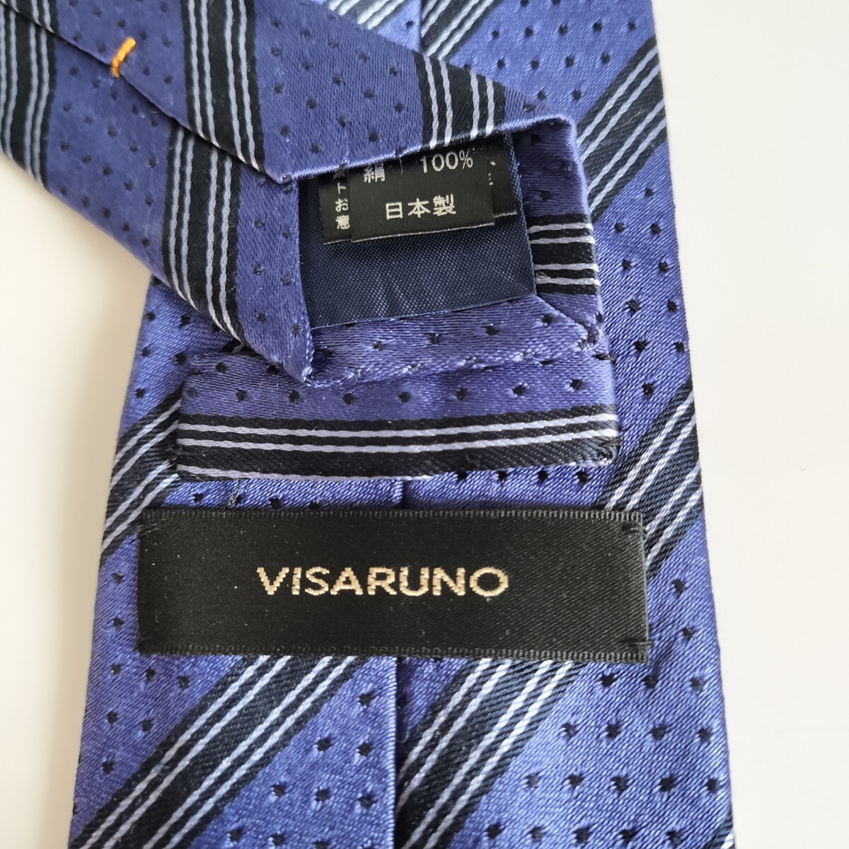 - ビサルノ(VISARUNO)ラベンダー紺ストライプ模様点ネクタイ