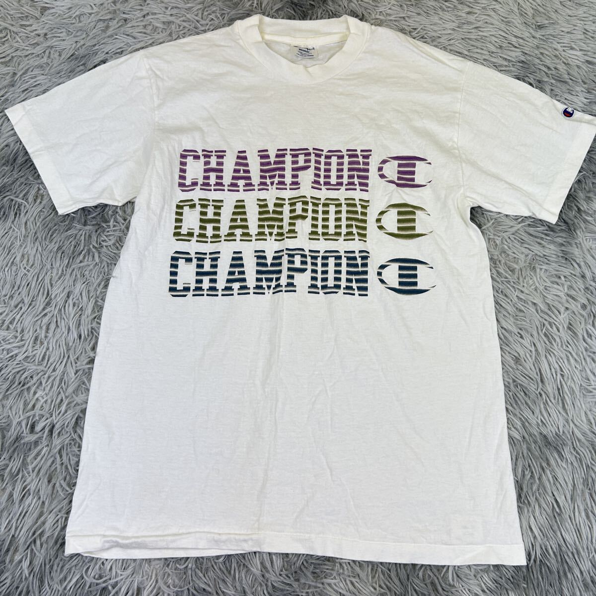 - champion チャンピオン Tシャツ 半袖 アメリカ製 USA 刺繍 ロゴ ホワイト 白 M