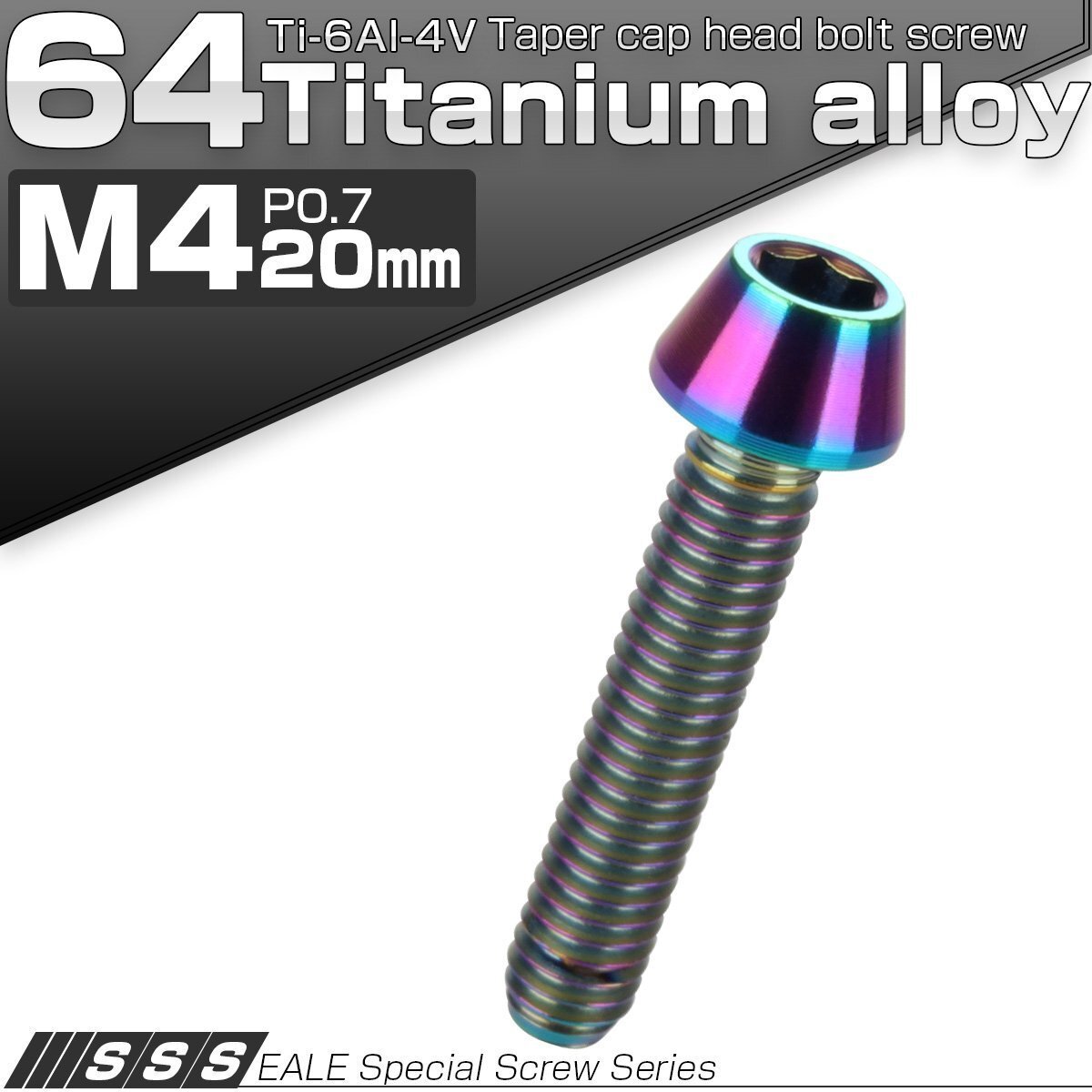 - チタンボルト M4×20mm P0.7 キャップボルト 虹色 レインボー 六角穴付きボルト テーパー JA711