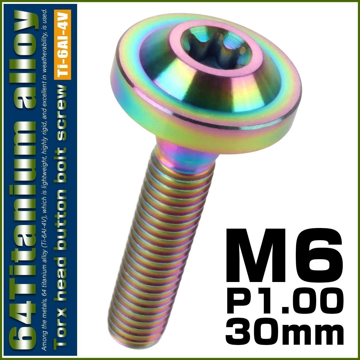 - チタンボルト M6×30mm P1.0 ボタンボルト トルクス穴付き デザインボルト 焼きチタン風ライトカラー レインボー JA668