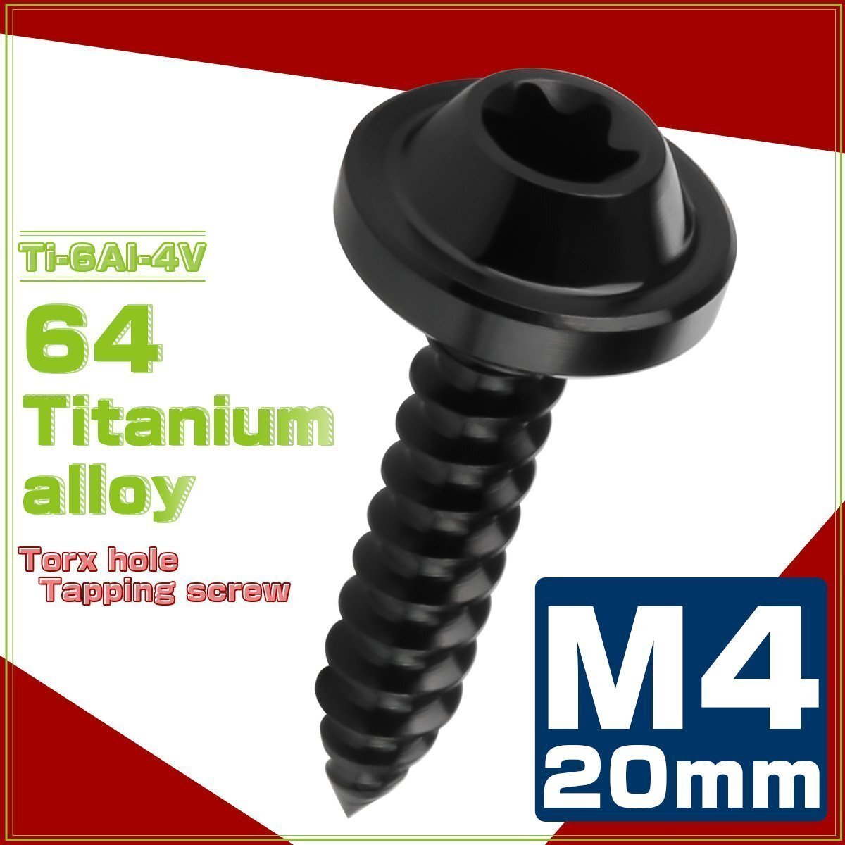 - 64チタン M4×20mm タッピングネジ トルクス穴 フランジ付き ビス ブラック JA1030