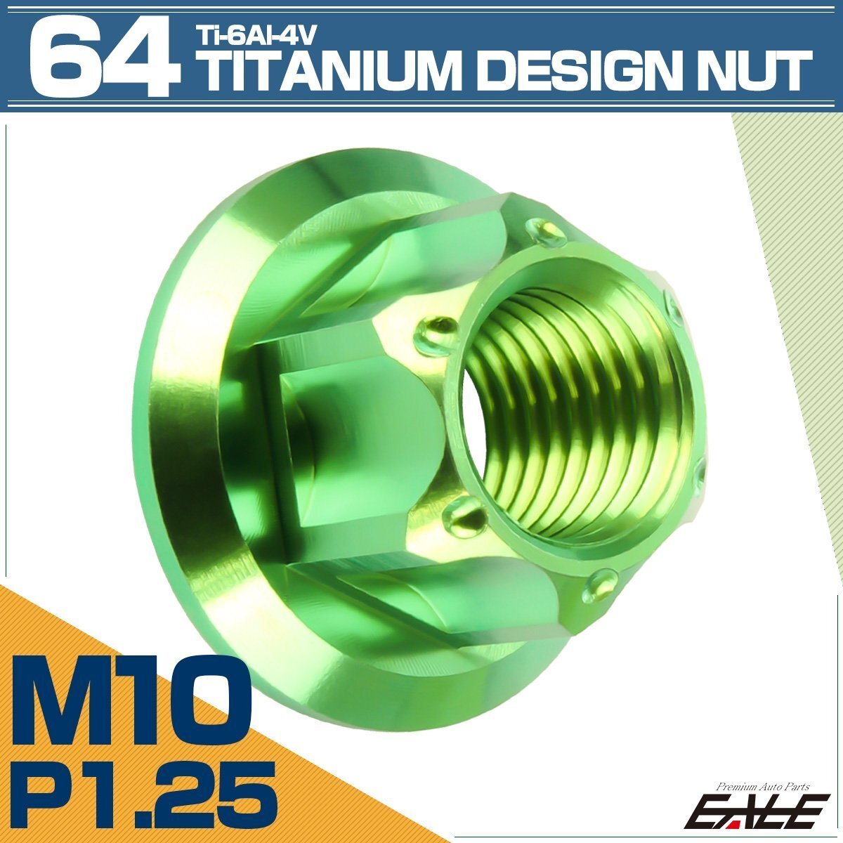 > 64チタン M10 P1.25 フランジ付き デザインナット ホール穴 六角ナット グリーン JA1150