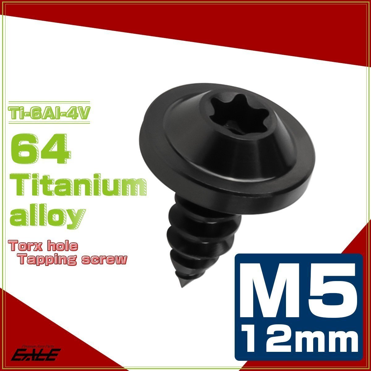 - 64チタン M5×12mm タッピングネジ トルクス穴 フランジ付き ビス ブラック JA1252