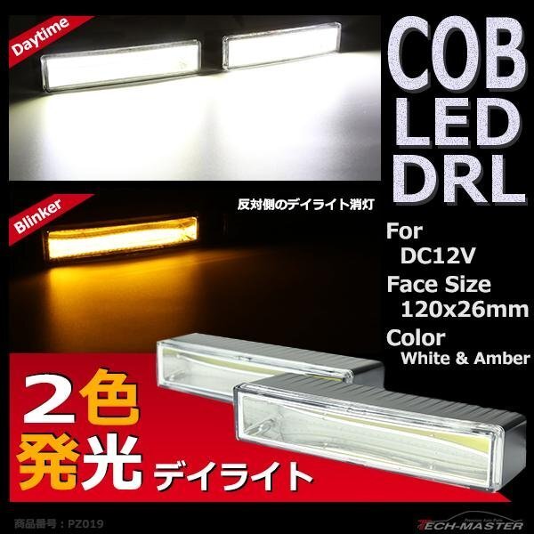 - COB LEDデイライト ウインカー搭載 ホワイト/アンバー DC12V専用 汎用 DRL 横幅12cm PZ019