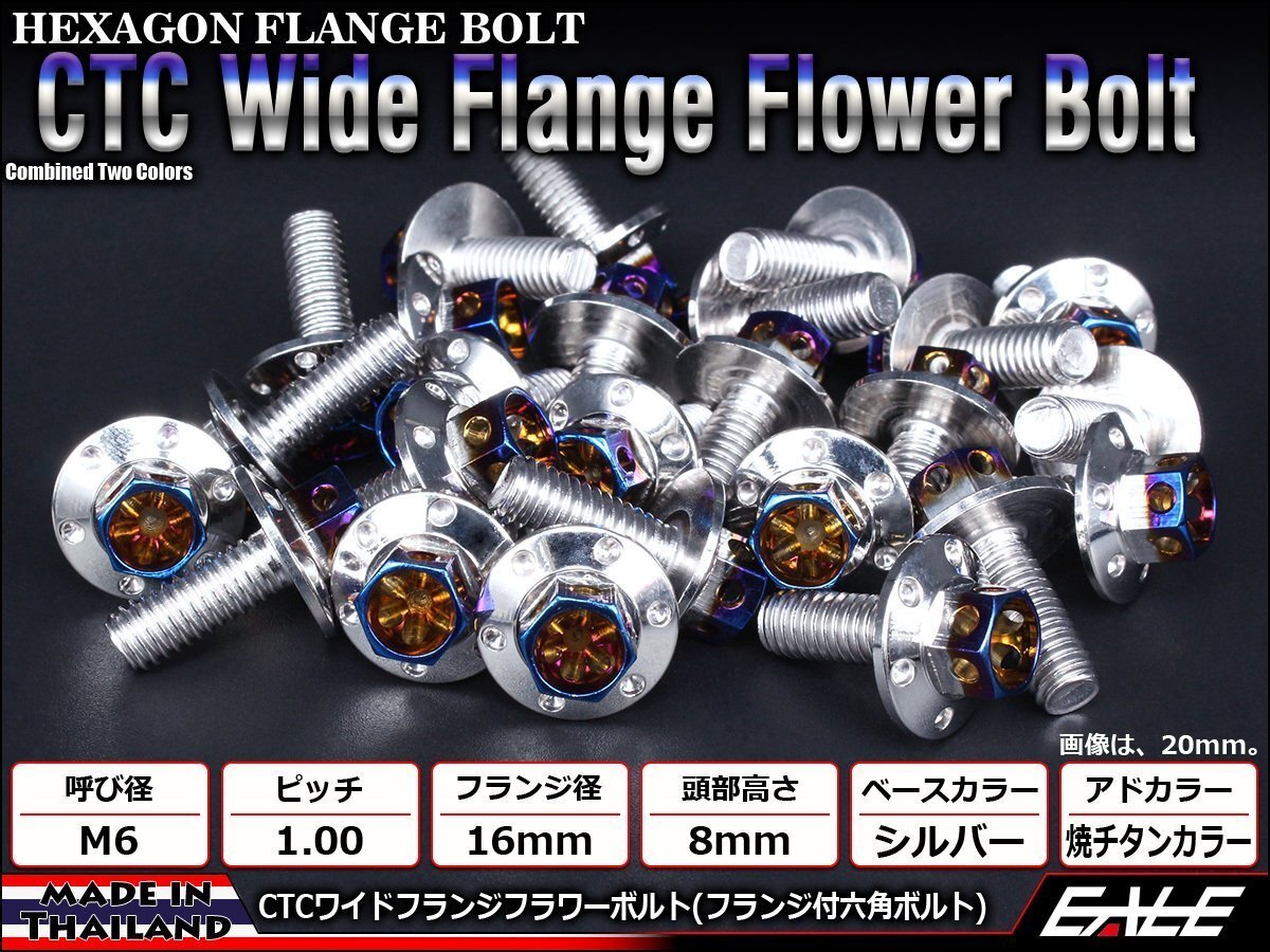 > M6×12mm 2色ワイドフランジフラワーボルト フランジ付き六角ボルト ステンレス削り出し シルバー&焼チタンカラーTB0971