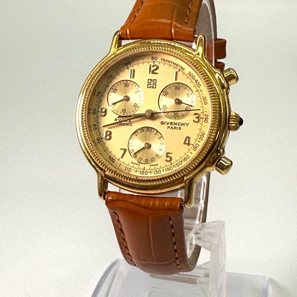 - GIVENCHY ジバンシー 腕時計 ゴールド 稼働 メンズクロノ 電池交換・ベルト交換 済 #A3364