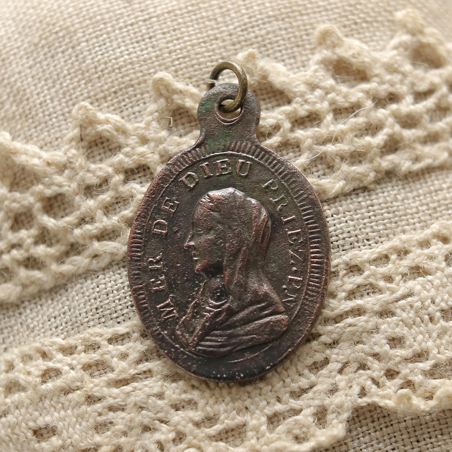 - フランス アンティーク【新しい道を切り開くメダイ ミシオン 聖母マリア】 メダイ/チャーム メダル ロザリオ キリスト マリア 教会/4-E