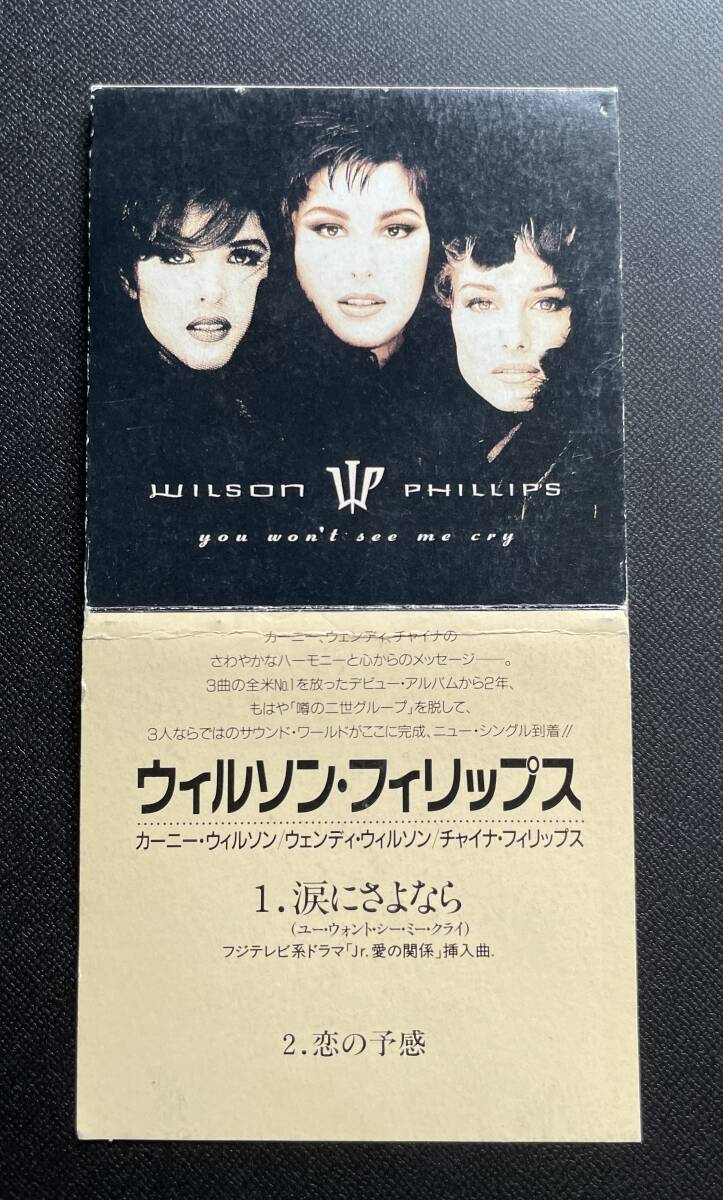 - 中古!【8cm SCD 】ウィルソン・フィリップス/ 涙にさよなら Wilson Phillips / You Won't See Me Cry/「MDディスク」東芝EMI
