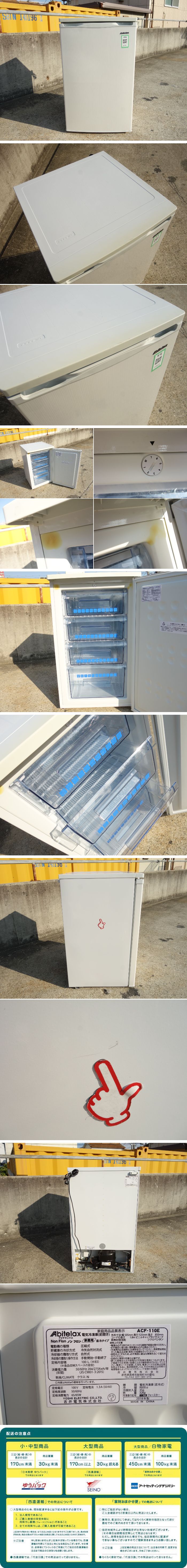 ○収納に便利な前開きタイプの冷凍庫。4つの引き出し式プラスチックバスケットを備えている。