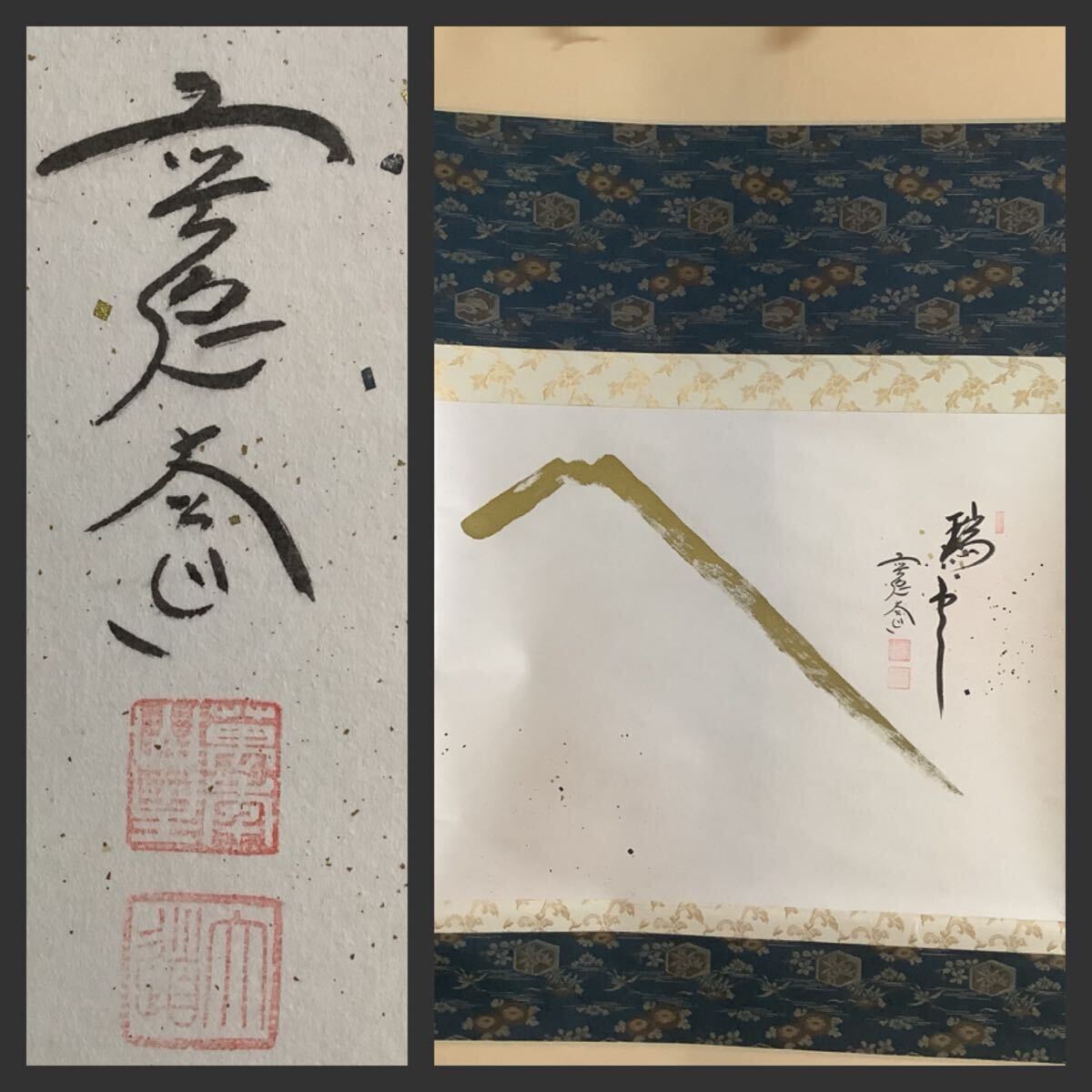 - 【模写】掛軸Sep714B[西垣大道 瑞雲富士山画賛]紙本 書いたもの 共箱/仏画仏教美術 臨済宗大徳寺派 極楽寺住職 金泥