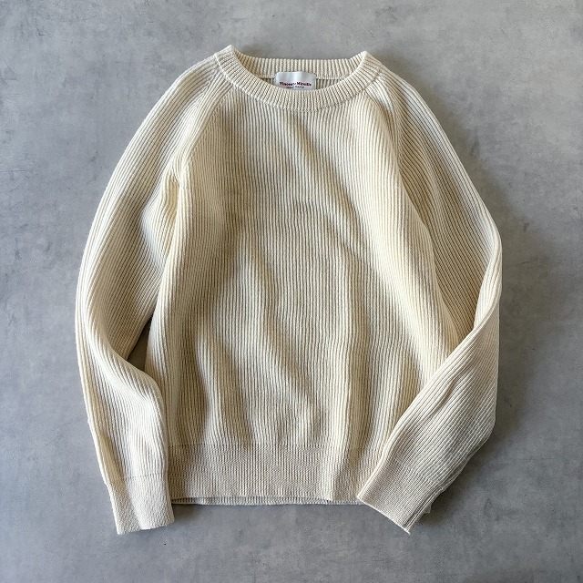 - ヴァンソンエミレイユ Vincent et Mireille 日本製 リブ編み 片畔編み 丸首 プルオーバー ニット セーター (40) クリーム バンソン /r-844