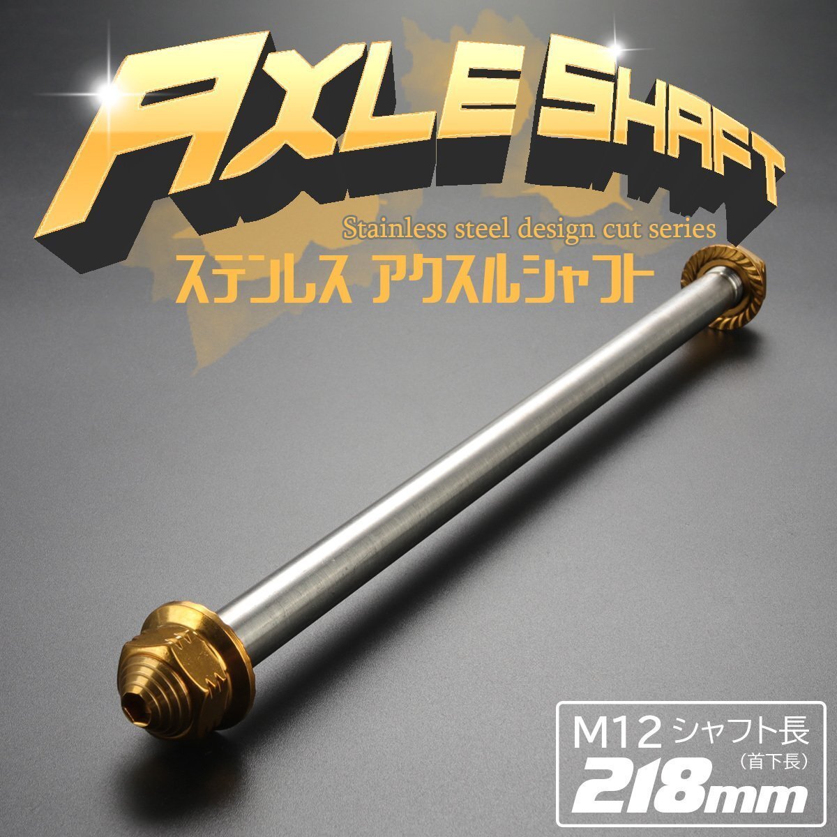> 汎用 アクスルシャフト M12 シャフト長218mm ゴールド SUS304 ステンレス カスタム アクスルナット付き TH0356