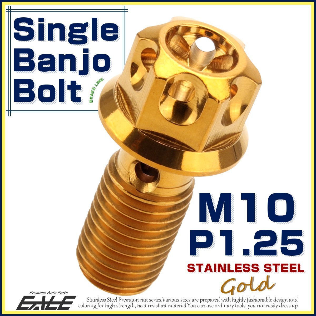 - バンジョーボルト M10 P1.25 シングル ブレーキ SUS304 ステンレス製 A3ヘッド ゴールド TH0224