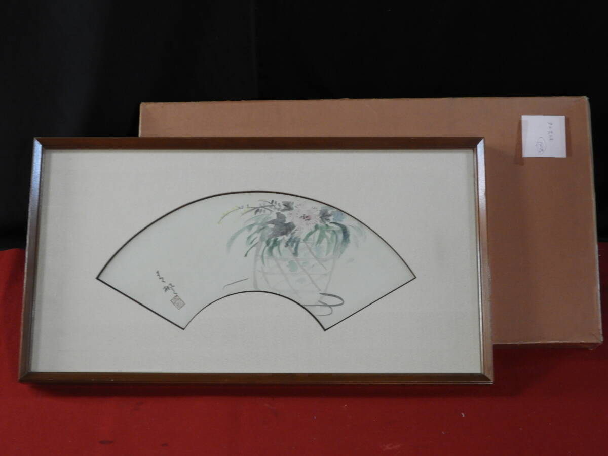 - 真作 津田青楓 (花) 扇面 紙本 差し箱 アクリル板 真筆保証 肉筆保証 骨董 絵画 書 古物