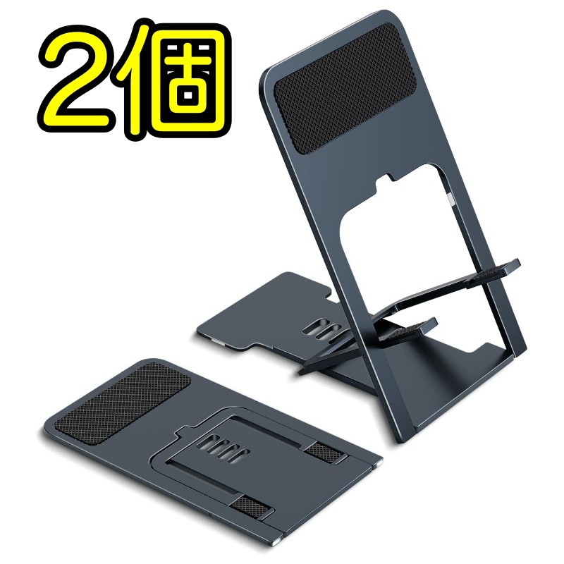 > (2個セット) スマホスタンド 卓上 携帯スタンド 4段階 角度調整 フラット 折りたたみ タブレット スタンド (ダークシルバー)neriken