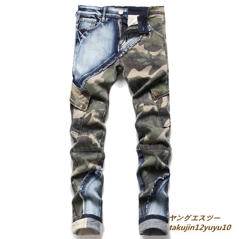 - ジーンズ 新品 メンズ デニムパンツ迷彩柄 ジーパン 切替ストレート バイクパンツ スキニー 個性ヴィンテージ トレンド チノパン 選択可 32