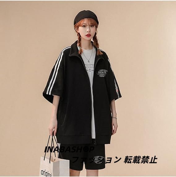 - 春夏 半袖ジャージ レディーズ 上下セットアップ 五分袖 パーカー ショートパンツ 2点セット スポーツウェア ゆったり カジュアル 韓国風