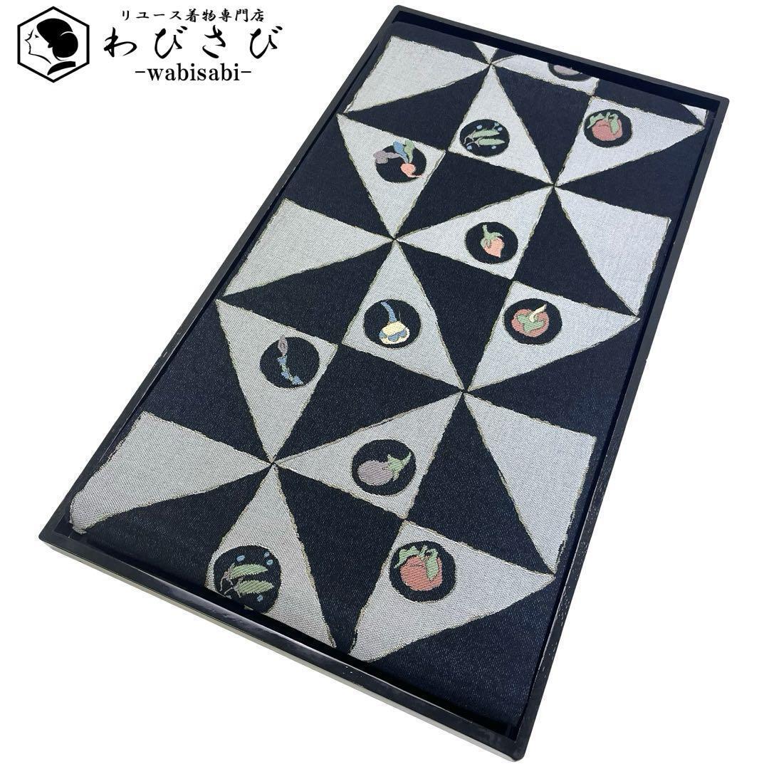 > 袋帯 風車模様 野菜柄 紺鉄色 ガード加工 O-4146 着物 きもの kimono 和服 和装 中古 リサイクル着物 【送料無料】
