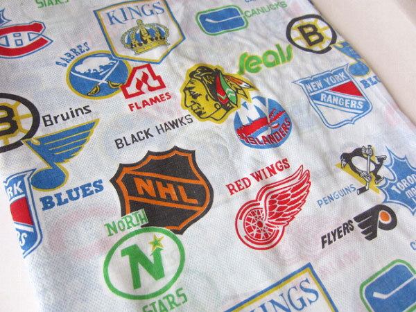 - USA製 NHL 総柄プリント 大判はぎれ 生地 シーツ アメリカ製 ビンテージ ハンドメイド リメイク D121-71-0049ZVW