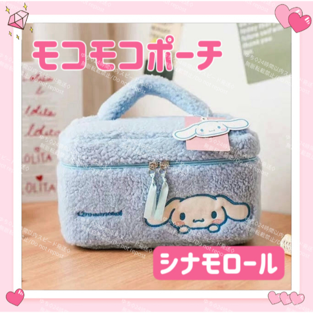 - 海外限定 サンリオ モコモコ ポーチ 大容量 メイク 化粧 トラベル 小物入れ 可愛い シナモロール