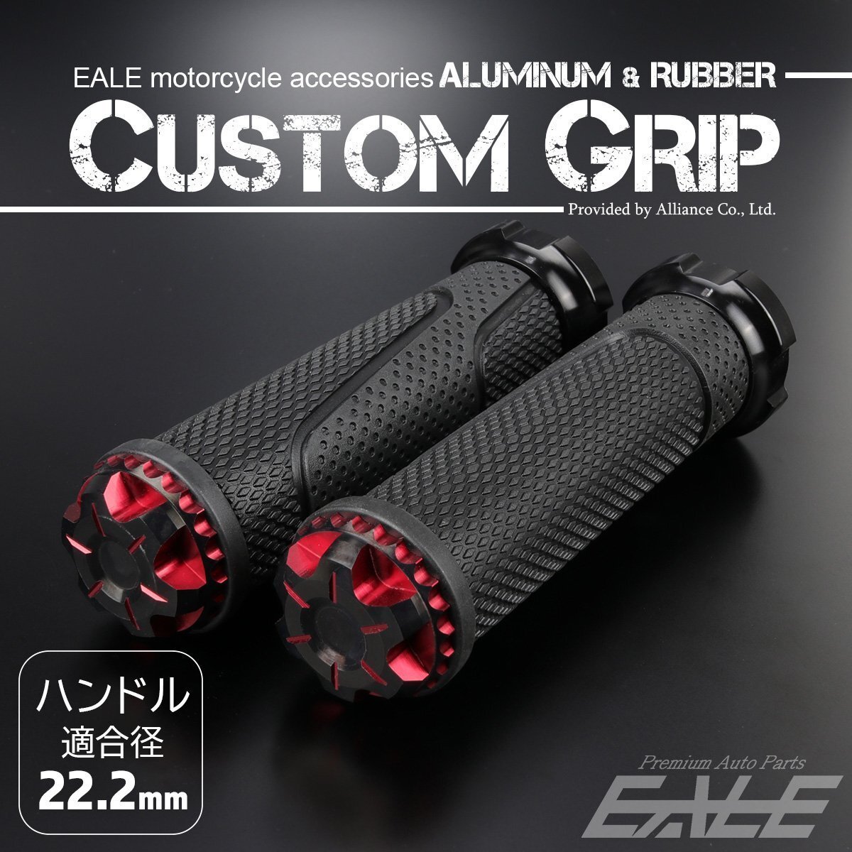 > バイク グリップ ハンドル アルミ バーエンド付 22.2mm用 レッド カスタム ドレスアップ S-1051-R
