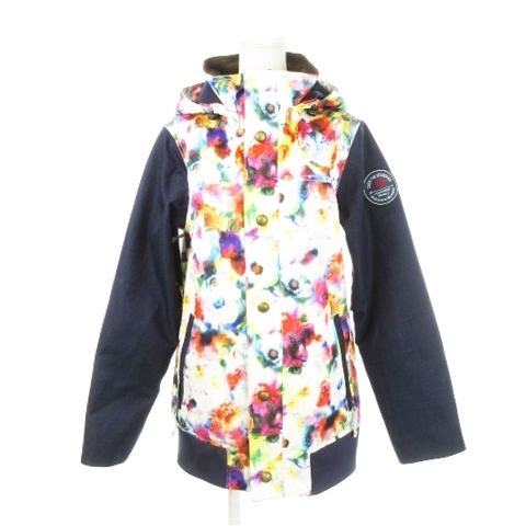 > シスタージェイ SISTA.J THE SOLAR SYSTEM スノーボードウェア スキー ジャケット 中綿 フード 水彩 花柄 切り替え M 紺 ネイビー