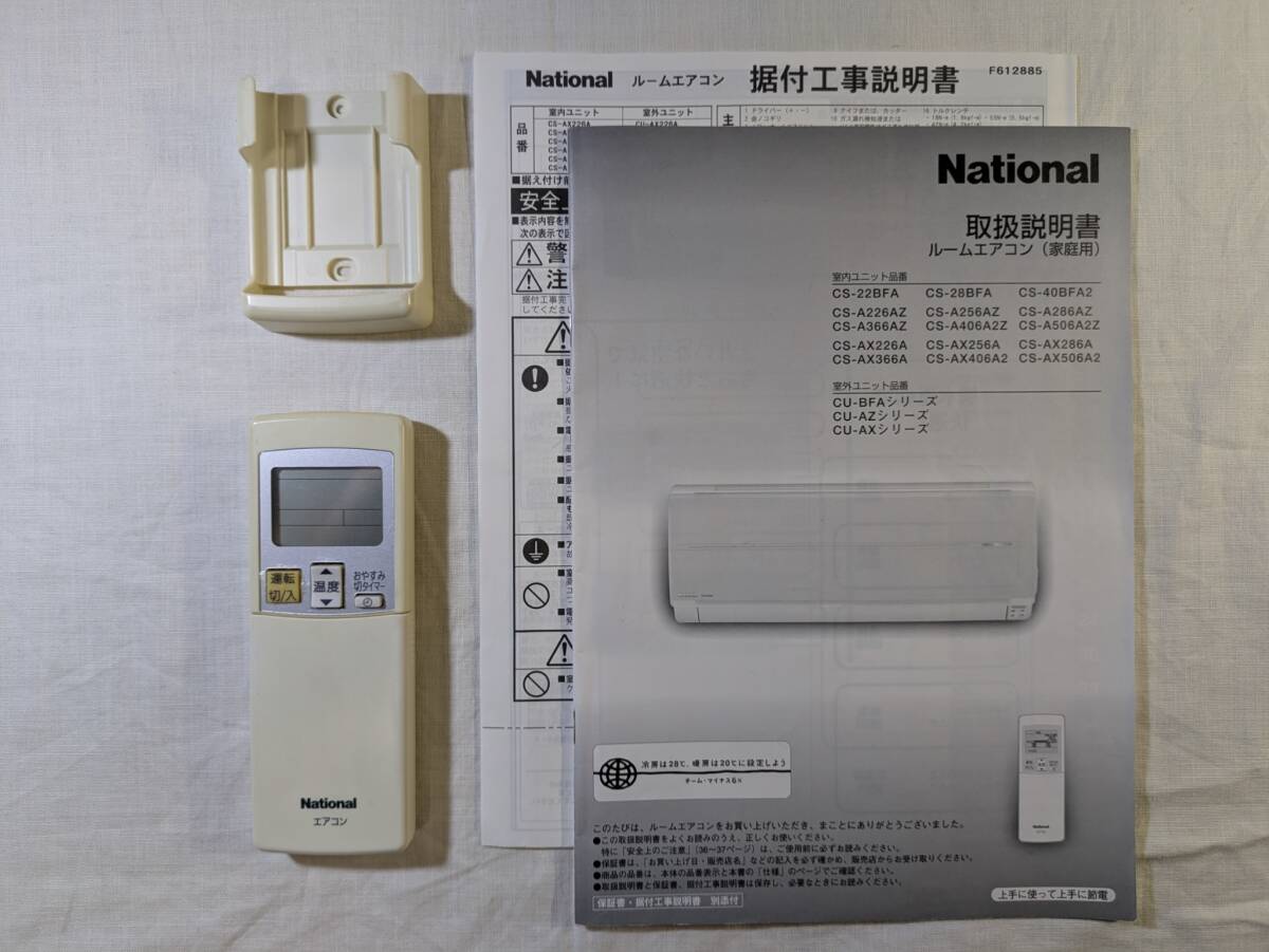 - ナショナル エアコン 純正リモコン A75C2872(取扱説明書+据付工事説明書+リモコンホルダー付き/中古)通電確認済