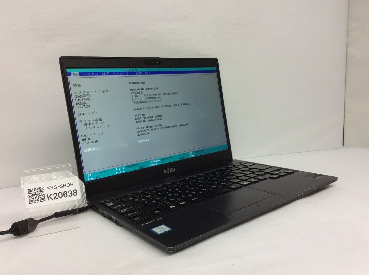 > ジャンク/ FUJITSU FMVU1803MD LIFEBOOK U938/VW Intel Core i7-8550U メモリ8.19GB ストレージ無し 【K20638】
