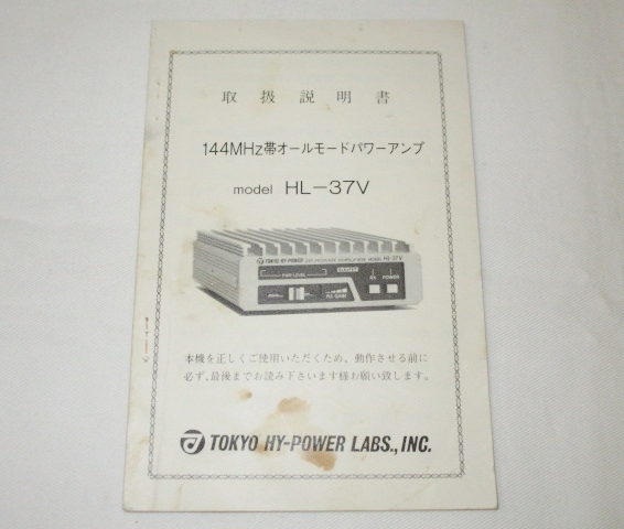 - 《取扱説明書 回路図掲載 原本 /r》東京ハイパワー HL-37V 144MHz帯オールモードパワーアンプ 使用感有り