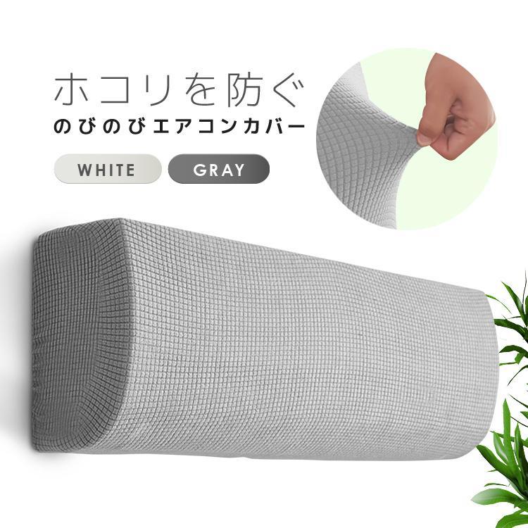 - エアコンカバー 室内機カバー シンプル 無地 洗える かんたん脱着 伸縮素材 ホコリ対策 グレー LP-KTZ8895
