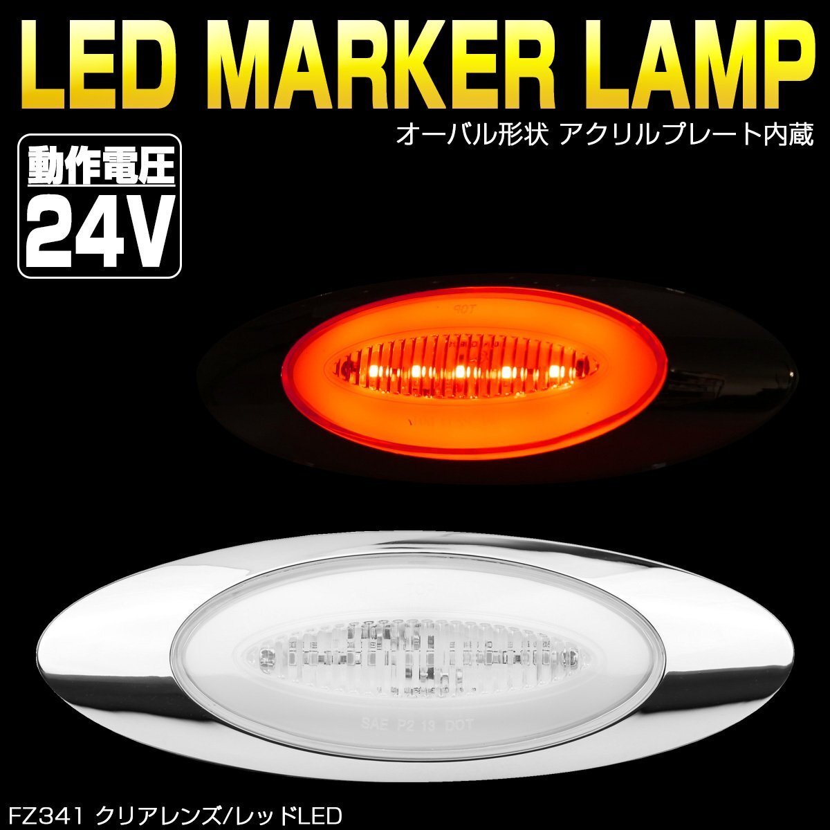 > 24V LED マーカーランプ クリアレンズ レッドLED アクリルプレート内蔵 オーバル型 トラック サイドマーカー メッキ FZ341